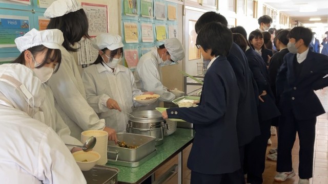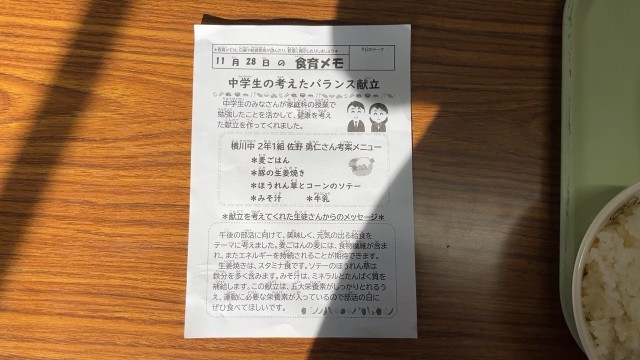 本日の給食献立は 中学生の考えたバランス、献立 でした。みんなで美味しくいただきました。
