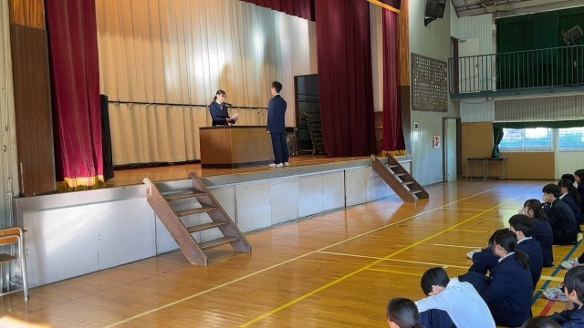 平常授業日 週明けスタートです。画像は 全校朝礼 などです。
