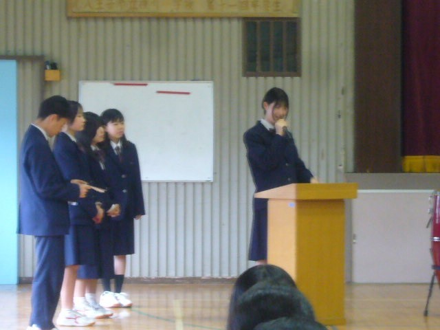 本日は対面式をしました。新入生と在校生が対面することで、新入生は横川中学校の生徒としての自覚を、在校生には先輩・最上級生としての自覚をもたせるのが目的です。また、1年生に横川中学校の委員会や部活動の説明をして理解してもらうことをねらいとしています。1年生が入場後、生徒会の司会により、第1部は生徒会組織と委員会の紹介を行いました。②の記事より委員会や部活動の紹介をします。
