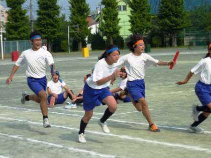 学級対抗リレー・・・一所懸命走る姿は感動的です。