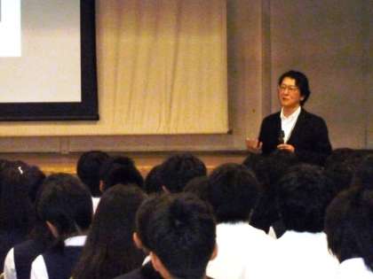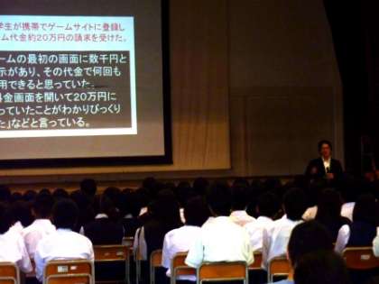 KDDIケータイ教室の方を講師にお招きして、セーフティ教室が開催されました。第1部は、ケータイやインターネット、メールのトラブル、犯罪、その対策などについて、DVDでの説明など、分かり易く講演していただきました。