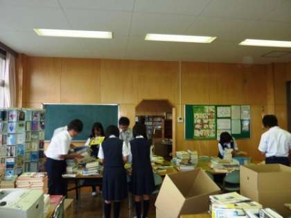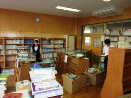 今日の図書委員会の活動は、本の仕分けです。分類番号ごとに、仕分けをします。文学関係は蔵書数が多いので、いったん段ボールへ分けて入れ、他の番号は、各書架の前に置きました。仕分けが終わるまで、まだまだ時間がかかりそうです。(仕分けがすめば、書架に並べる作業になります。並び変えが終わるまでは、しばらく休館です。)