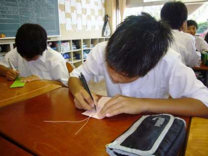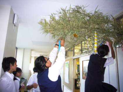 1年生は、日本の文化の理解と継承ということで、6校時総合的な学習の時間に短冊に願いを書き、笹にかけました。どうかみんなの願いが叶いますように。