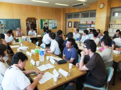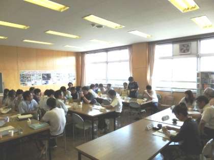 5校時授業の参観後は、横川小学校の先生方、本校の先生方との意見交換です。体育授業(水泳)の感想や、他の授業の感想、小学校での勉強や成績のこと・・・いろいろな話がでて、小学校、中学校の状況について理解を深めました。