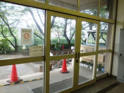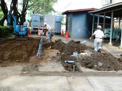 昇降口北側に仮設トイレを設置するための工事が急ピッチで進んでいます。