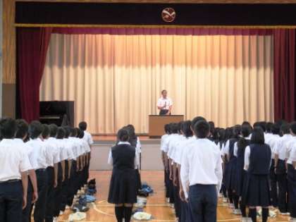 1校時、2校時は授業、3校時が終業式です。校長先生から、1学期の通知表について、「学習は生活の中の一部、生活の基盤がしっかりしてこそ学習が成り立ちます。結果について自分で考えてみましょう。」との話がありました。生活指導の先生からは、「規範意識を十分にもって行動しましょう。」との話です。