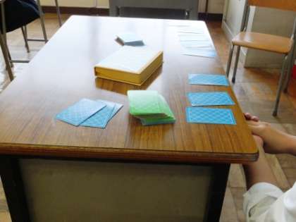 ESS部です。カードを使って、楽しく英語に親しみます。