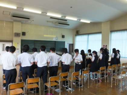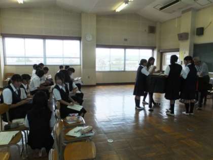 2年1組、音楽の授業です。10月の合唱祭に向けて取り組んでいます。女子は歌うことがとても楽しい・・という気持ちがでています。歌う表情は、楽しそうな笑顔です。男子は変声期で声が出しにくいのか、ちょっと遠慮しています。これからの歌い込みに期待しましょう。