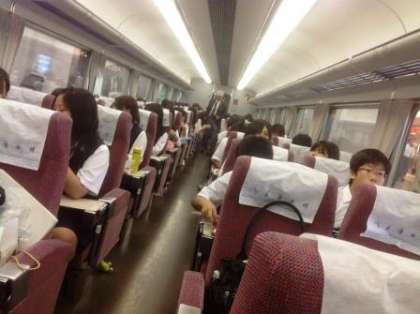 3年生は京都駅に着き、近鉄特急に乗りました。奈良へ向かう車内で昼食です。
