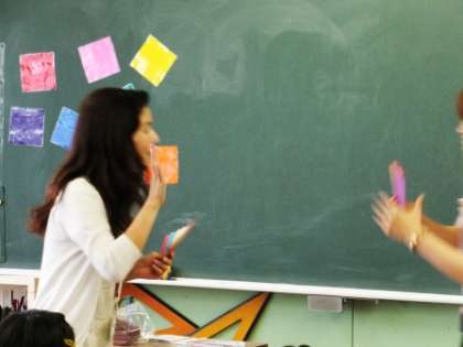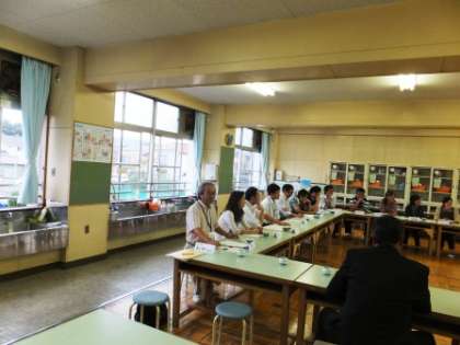 横川小学校へ本校の先生方が出向き、小学校の授業の参観や、3年生総合「外国語活動」、6年生音楽のTTとして、小学校の授業のお手伝いをしたりしました。夏休みの部活動体験で、本校の先生と接した小学校の児童は、その先生を見つけると、大きな声で挨拶をしてくれました。授業後は、小学校、中学校の先生方が集まって、意見交換です。授業の感想や、今後の小中一貫教育について話し合いました。
