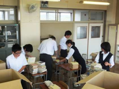 市教育センターから、学校図書館支援担当の方が3人見えました。今日は図書の整理をしていただきました。保護者の方もお手伝いに来て下さり、図書委員の生徒も、後期の委員会初めての活動として一緒に整理をしました。
