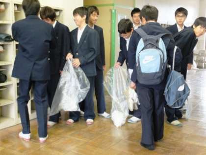 新生徒会の活動です。前生徒会に引き続き、ペットボトルキャップを集めます。今日は前生徒会も応援で手伝ってくれました。そろそろ7万個になりそうです。