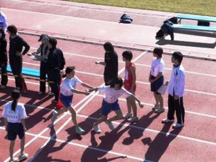 襷をつなぐ・・・一人一人の気持ちが高まります。一生懸命走りました。応援の保護者、在校生、先生方も大きな声で、声援を送りました。