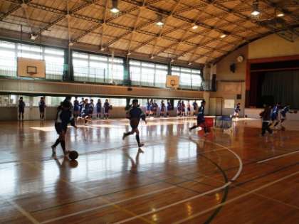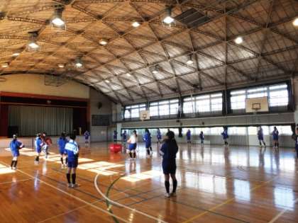 3年生体育女子は体育館でバスケットボールです。体育館いっぱいに広がって運動しています。体育館も冷え切っています。動きを止めると寒いです。