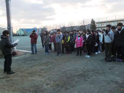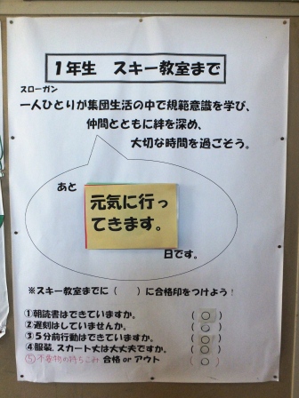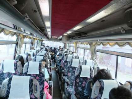 1年生宿泊体験学習(スキー移動教室)です。午前8時10分、元気よく学校を出発です。
