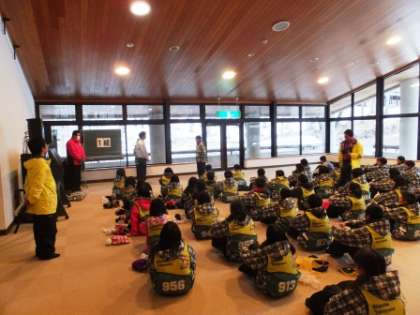 今日の講習は終了です。姫木平自然の家に戻り、宿舎の方に挨拶をします。
