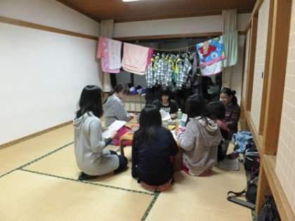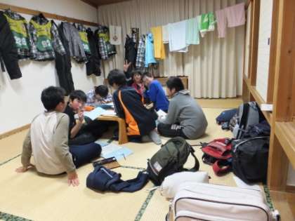 係会議の連絡を受け、部屋会議です。終了後は、就寝準備、午後10時消灯です。、