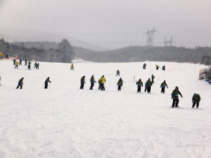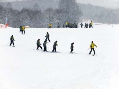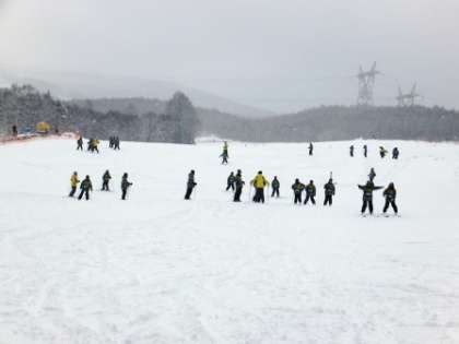 午前中の講習が終わり、昼食場所まで滑って降りて来ます。2時間30分の講習です。