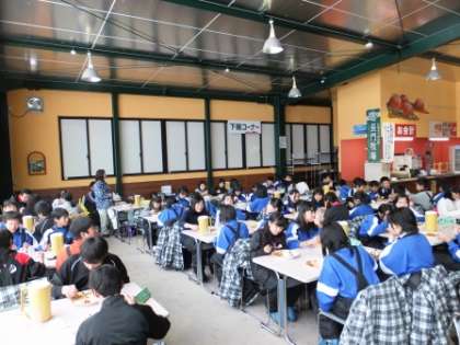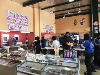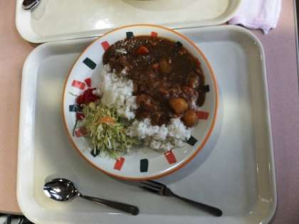 今日の昼食場所は、リフトを1本乗って降りた所にあります。昨日より標高が高い場所にあります。今日はカレーライスです。手指消毒をしてカウンターへ並び受け取ります。