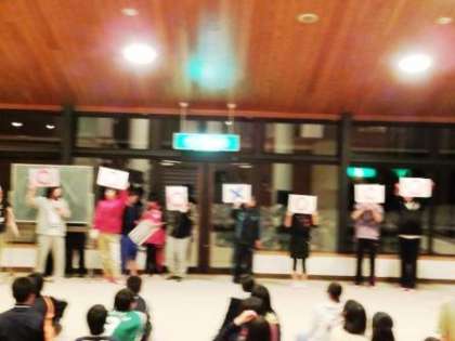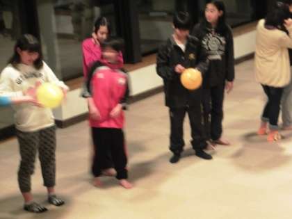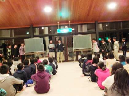 夕食の後はレクリェーション大会です。1組、2組、それぞれ男子、女子で楽しいゲームを企画しました。