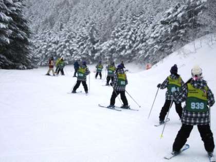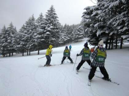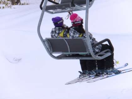 リフトに乗ります。今日は山頂からのコースや、いろいろなコースを滑ります。