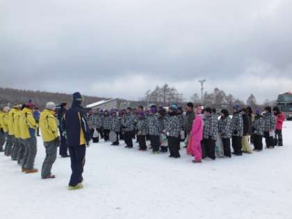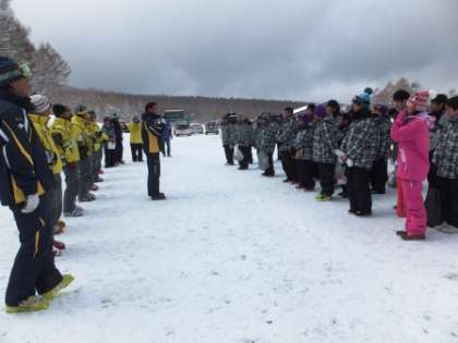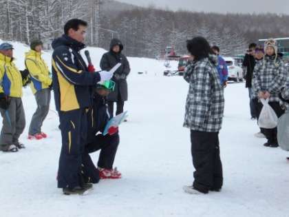 閉校式です。スキー学校から、全員に修了証をいただきました。お礼の挨拶の後、お世話になったインストラクターの先生ともお別れです。