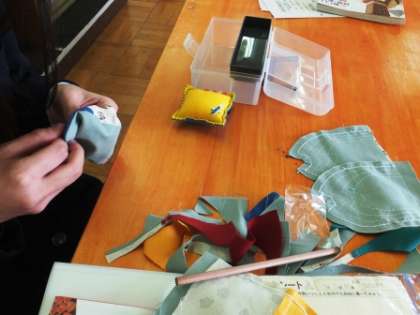 3年生家庭科の授業です。お手玉を制作しています。一針一針、手縫いです。可愛いいお手玉が出来上がってきました。