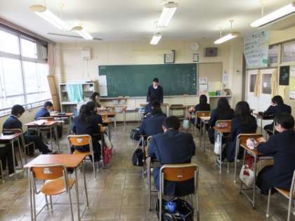 2年生国語(書写)で四字熟語を書きました。今日は自分が選んで書いた文字について、その文字を選んだ理由や、四字熟語の意味、その文字と自分の関わりなどを発表しました。前もって発表内容を考えて原稿作成していましたが、本番には緊張して言葉がでなくなったりした生徒もいました。皆、真剣によく取り組みました。