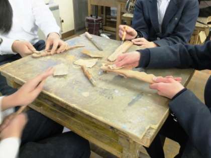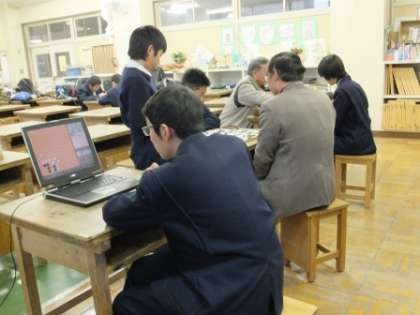 放課後の美術室です。囲碁部は地域の方やパソコンを相手に対局中です。美術部は作品制作をしています。