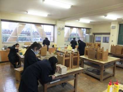 美術室、技術室は、8日(金)、9日(土)の展示祭に向けて、作品がまだ完成していない生徒が、放課後残って制作です。
