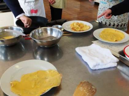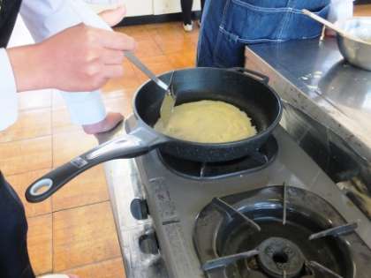 男子も、女子も楽しみにしていたクレープ作りです。上手に焼けています。美味しそうですね。