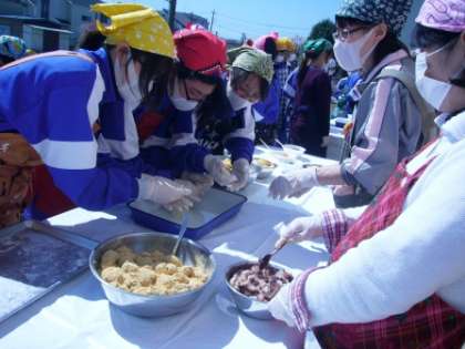 3年生は、PTA、青少年対策横川地区委員会、育成指導員の皆様のご協力のもと、今日は餅つき大会です。初めて餅つきをする生徒も、だんだん慣れて上手に餅つきができるようになりました。あん、みたらし、大根おろし、きな粉・・・つきたての餅を丸めて、からめます。大変美味しくできました。1・2年生も昼食時にいただきました。大好評です。