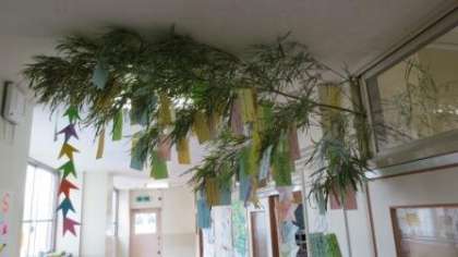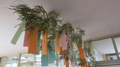 早速短冊をつくり、教室前の廊下に飾らしていただきました。いろいろな願い事があって、とても興味深いです。