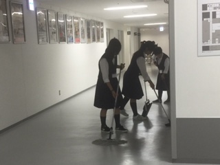 開館に向けて、みんなで通路を綺麗にしています。