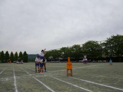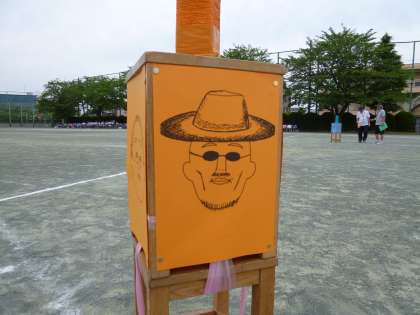先生の似顔絵を描いた的を目指してボールを振り回します。