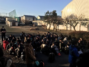 朝焼けの中出発式を行い、今年度のスキー教室へ出発です。