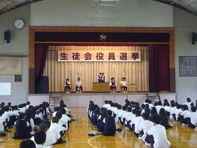 生徒会役員選挙が行われました。各立候補者の演説を聞いた後、八王子市選挙管理委員会からお借りした投票台や投票箱を使用して、投票が行われました。