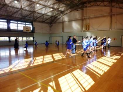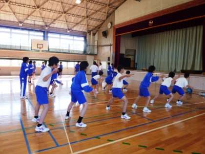 今日の1年生体育授業の男子のダンスは1組、2組とも、生徒が考えた振り付けを、みんなで合わせています。1つ1つの細かい動きを覚えることに苦労しているようです。女子は剣道授業5回目です。かけ声も最初にくらべ、でてきました。