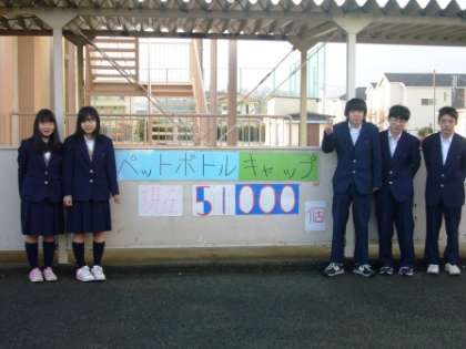 生徒会が中心になって取り組んでいる、ペットボトルキャップ回収の、現在のキャップの数が、今日発表されました。51,000個です。ワクチン、63,75本分になります。ご協力ありがとうございます。