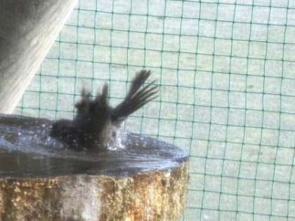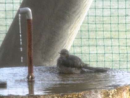 昇降口前の池にひよどりが訪れます。池の流水を飲みにきます。横川中の水が美味しいのでしょうか?