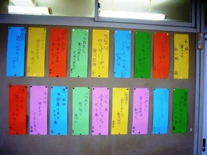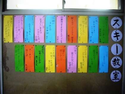 1年生宿泊体験学習(スキー移動教室)の思い出を俳句にしました。スキー教室での思い出が詰まった、力作、傑作ぞろいです。「北風に 背中押されて すべり降り」「頂上から 風にむかって すべってく」「深雪に 足をつかまれ のまれそう」「思い出が 入りきらない 旅行鞄」・・・作品の一部です。