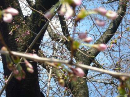 本校の桜が、少し咲き始めました。