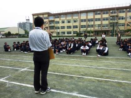 今日の避難訓練は、地震発生の際に、適切な避難方法をとり、速やかに避難できることを目的としています。「地震が発生したらまずどうするか」、「揺れがおさまったら次はどうするか」安全に自分の身を守るための迅速な判断ができるよう、訓練で学びます。