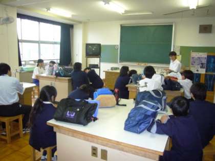 体育祭に向けて応援団の取り組みも始まりました。担当の先生の説明を受け、昨年度の応援のビデオを見ました。その後は、クラスカラーの青(各学年1組)、オレンジ(各学年2組)の色別に分かれ、応援で使う曲など、打ち合わせをしています。