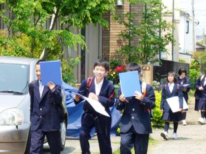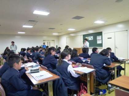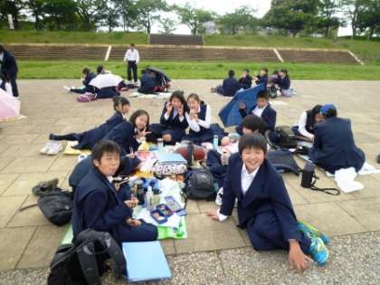 1年生は、横川地域周辺の身近な環境の観察です。自分達が発見したものは、写真に撮ります。いろいろな「不思議」や「おもしろ自然」を探してきました。昼食場所は多賀公園沿いの河川敷です。その後、市役所の会議室で、市の公園課の方から講話を聞きました。