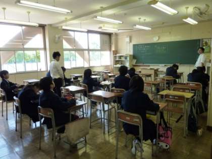 学生インターンシップで今日から大学生が来ています。水曜日は、主に数学の授業の補助をしています。