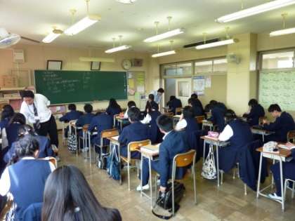3年2組、数学の研究授業です。市教育センターから2人の先生が見えて、授業の指導をしていただきました。