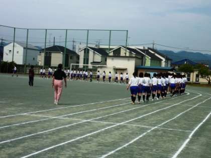 3年生の学年練習です。入場行進から始まりました。