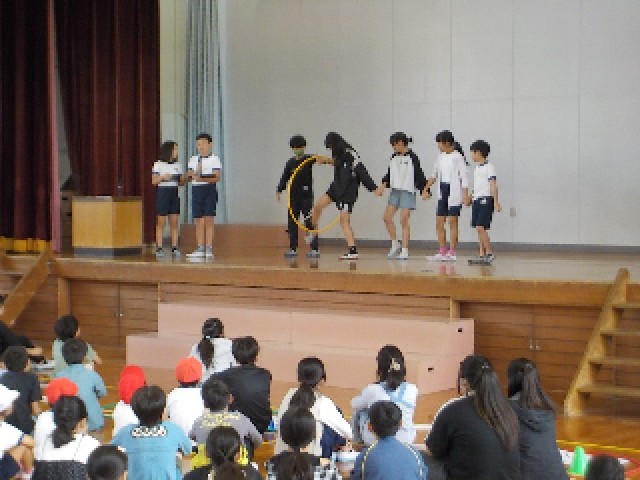 今回は、なかよし班対抗「フラフープくぐり」です。