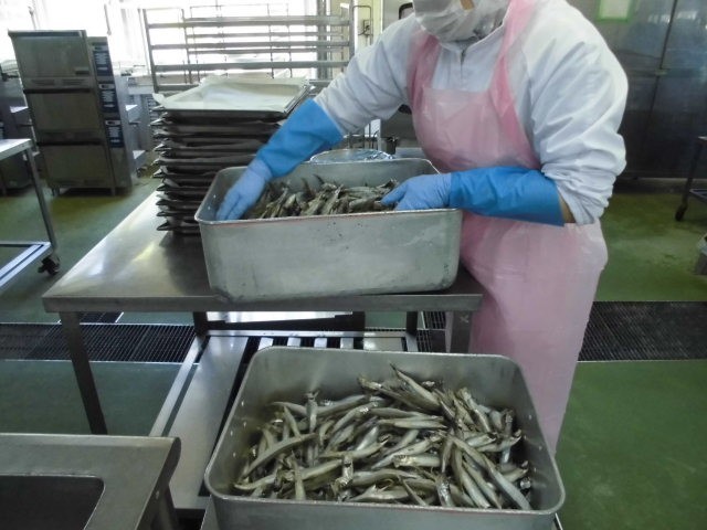 ししゃもの磯辺焼きは、調理さんが手作業で味をつけています。残菜が少なくと、給食室の私たちもうれしいです!